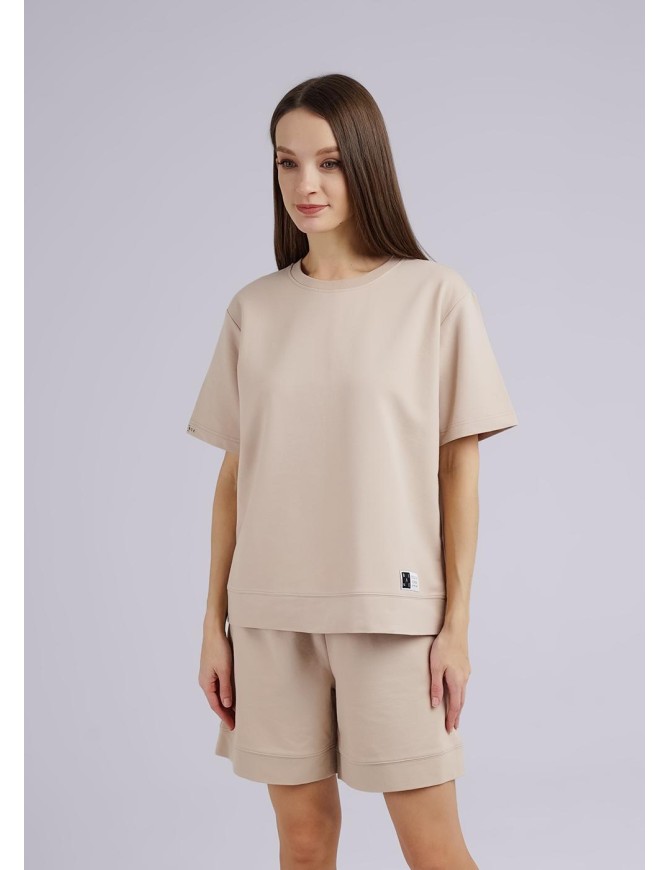 Набор, состоящий из джемпера и шорт. Джемпер прямого силуэта свободного прилегания, горловина обработана обтачкой. Шорты объемные, с притачным поясом на резинке со шнуром. На шортах выполнены боковые карманы с отрезным бочком.