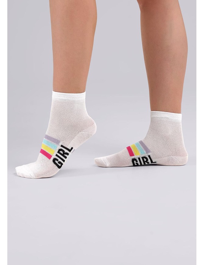 облегченные детские носки плетение сетка, с полосками и надписью.
