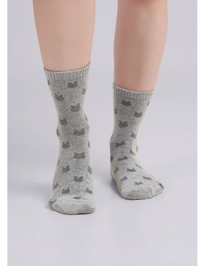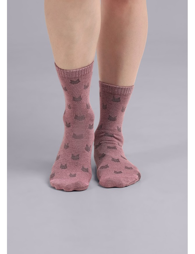 носки для девочки с вывязанным рисунком кошки( безниточная технология)
