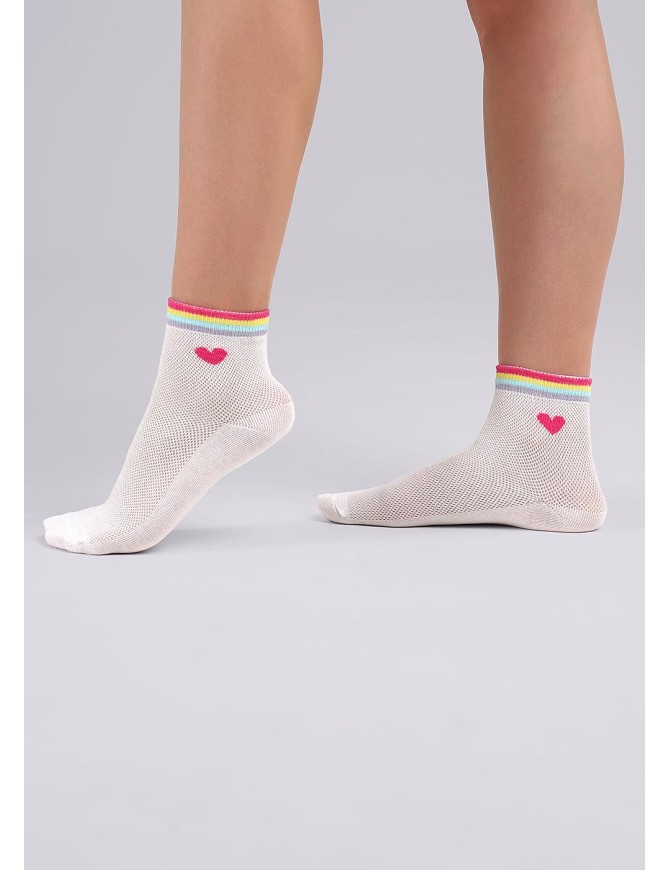 облегченные детские носки плетение сетка, с цветной резинкой и с сердечком.