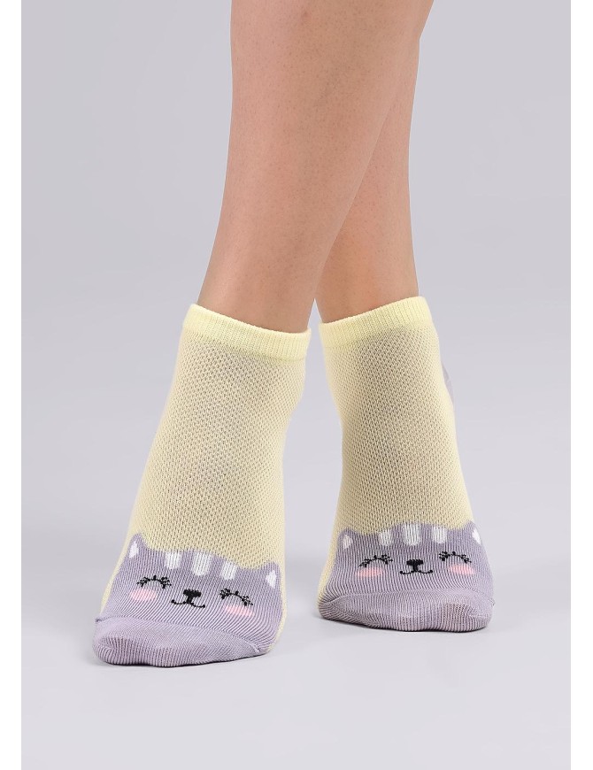 игровые носки для девочки с облегченным плетением сетка, рисунок кошка.