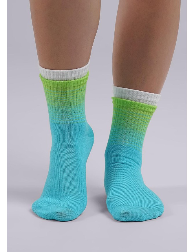 япкие молодежные носки с двумя бортиками , с переходом цветов