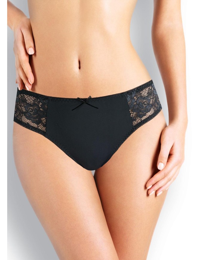 Трусы-слипы женские из полиамида. Обработка краев - ажурная резинка с фестоном. По переду и спинке вставки из кружева и бант. Производство Китай.