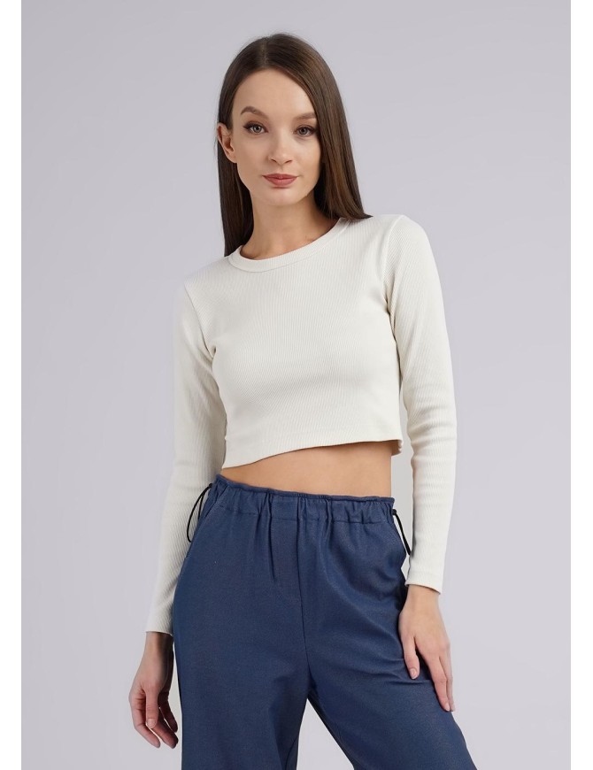 Трендовый укороченный джемпер из кашкорсе с длинным руковом. Модель прилегающего силуэта.