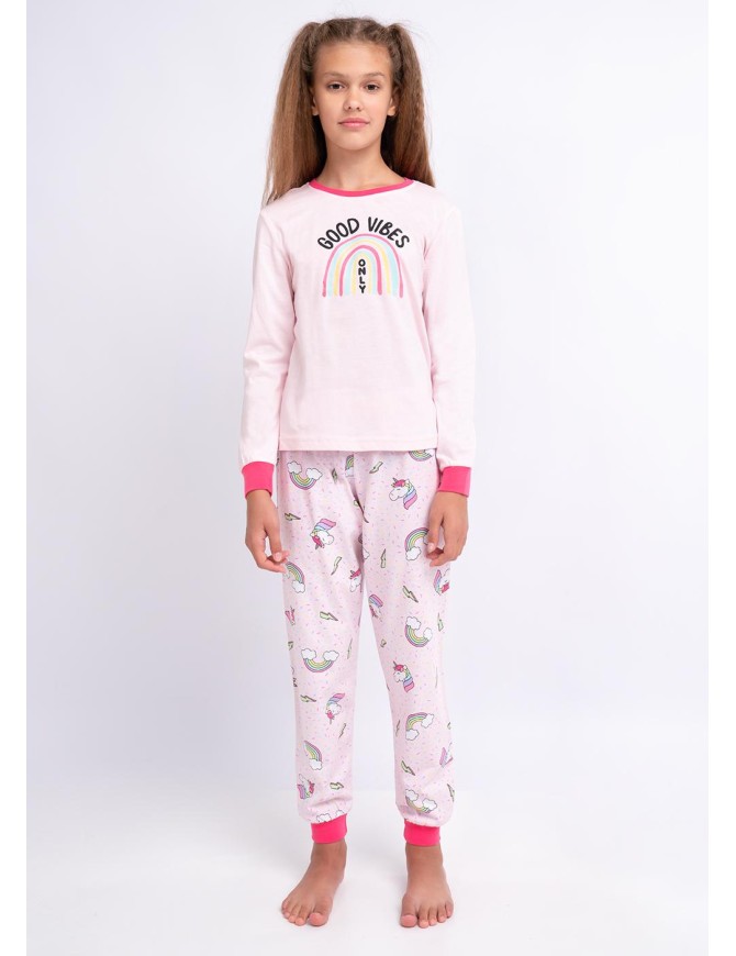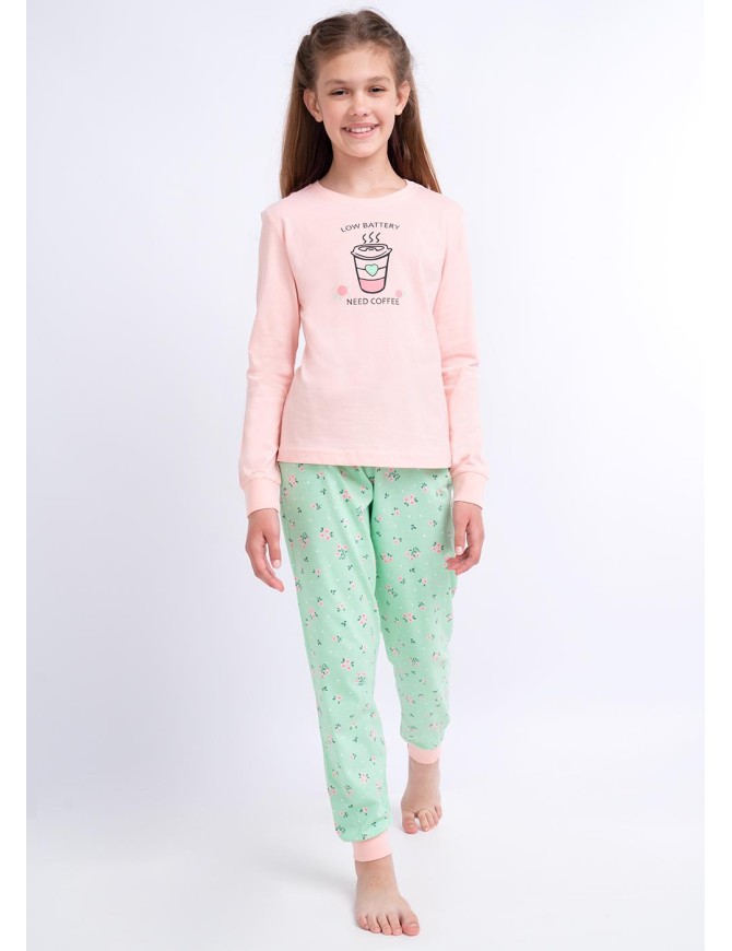 Джемпер с круглым вырезом горловины и втачным рукавом. На передней части изделия расположен принт. Брюки комфортной посадки на поясе с внутренней резинкой и эластичной манжетой по низу.