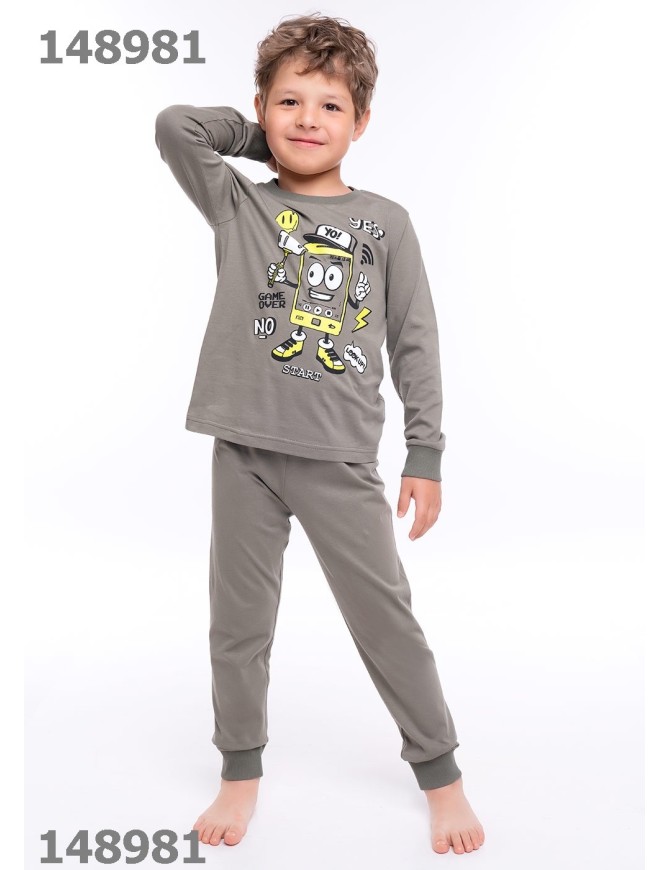 Хлопковая пижама. Обтачка горловины , манжеты по низу рукава и брюк из эластичного полотна. Пояс брюк с резинкой. Модель украшена оригинальным ярким принтом.