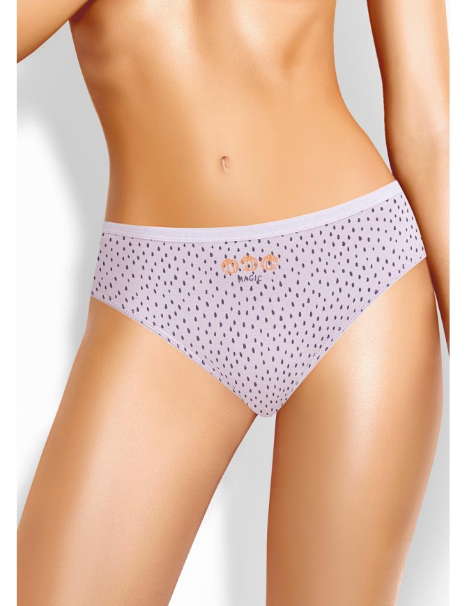Трусы слипы женские из эластичного хлопкового полотна. Обработка краев по талии и ножке - окантовочная резинка. По переду принт.