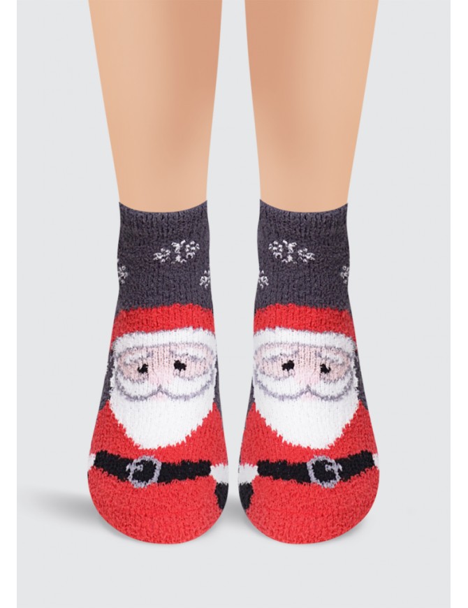 Детские новогодние носки из мягкой "травки" с рисунком деда мороза