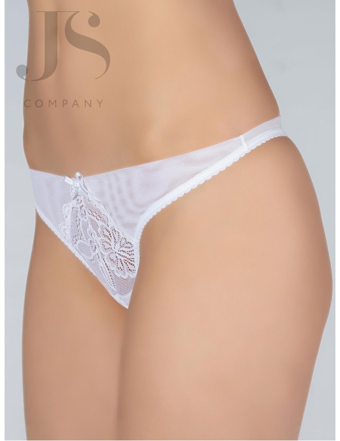Трусики стринг из микросеточки с кружевной вставкой спереди, с ажурной резинкой и бантиком