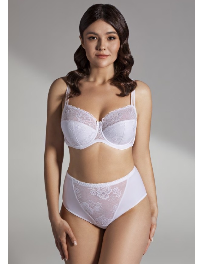 Бюстгальтер "балконет" из неэластичного кружева, неэластичного кружевного полотна и эластичного трикотажного полотна. На каркасах. Нижние детали чашек на дубляже с хлопком.