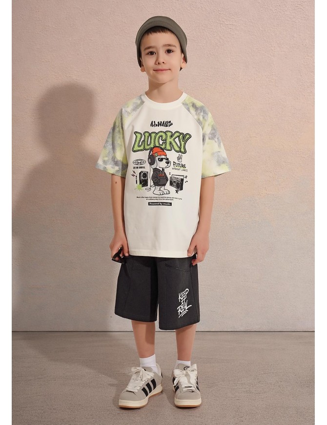 Футболка реглан для мальчика из 100 % хлопка. Акцентный принт и декоративная вшивка. Комфортная, стильная, для повседневной носки.Создавай яркие образы, сочетая футболку с шортами из новой коллекции!