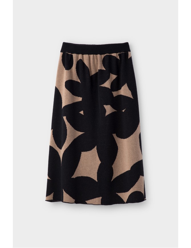Юбка вязаная длины миди из полушерстяной пряжи. Состав 50% шерсть и 50% акрил. Шерсть в составе сохраняет тепло, а акрил делает изделие мягким и объемным.