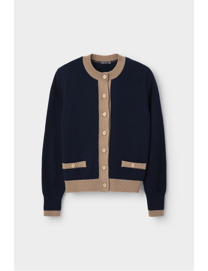 Вязаный кардиган в классическом стиле на пуговицах из шерсти с добавлением акрила. Шерсть в составе сохраняет тепло, а благодаря волокнам акрила изделие мягкое и дольше сохраняет форму. Гладкая фактура вязания сохраняет форму, а манжеты и нижний край не растянутся благодаря вывязанной резинке. Прямой силуэт идеально подходит как к юбке, так и к брюкам.