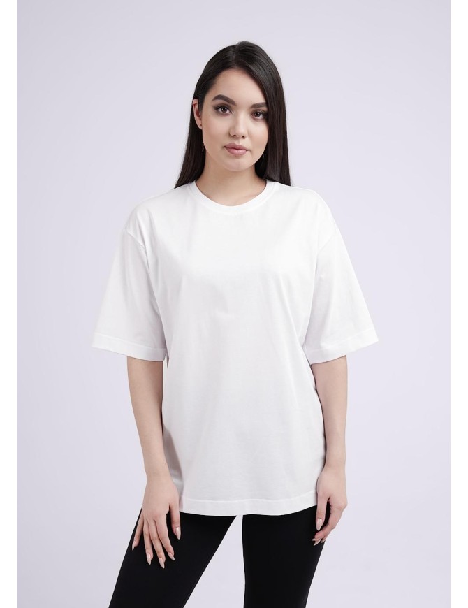 Джемпер прямого силуэта из хлопкового трикотажного полотна. Слегка спущенный короткий рукав. Округлая горловина с обтачкой.
