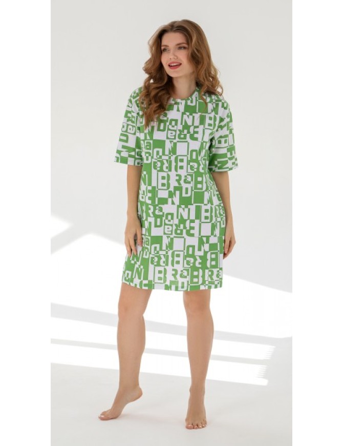 Туника молодежная из трикотажного полотна «кулирка» с набивным рисунком, прямого силуэта, с приспущенным плечом и втачными короткими рукавами. Горловина овальной формы обработана притачной бейкой. В нижней части боковых швов – разрезы.