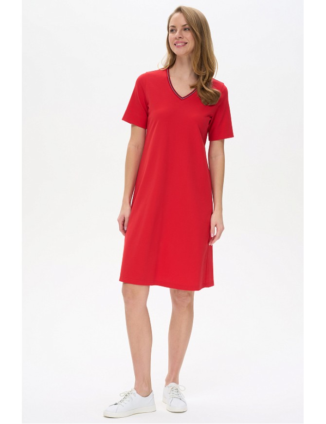 Платье полуприлегающего силуэта из хлопкового трикотажного полотна - пике. V - образный вырез горловины оформлен подвязом. Втачные короткие рукава. Рост модели на фото 178см