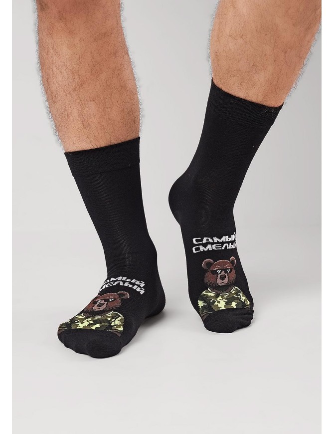 Мужские носки с рисунком на мыске и надписью "Самый смелый".