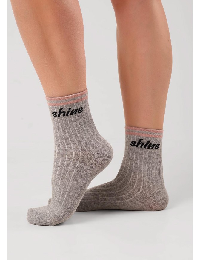 Носки для девочки с контрастными полосами на паголенке и надписью.