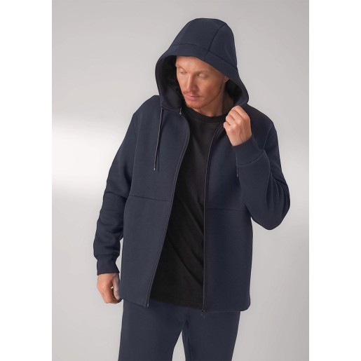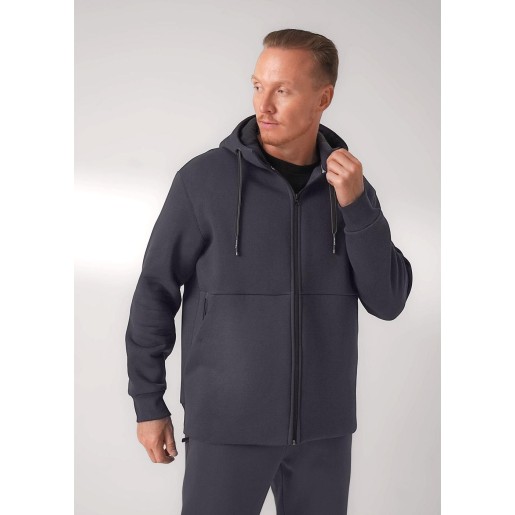 Тёплая мужская трикотажная куртка на молнии с капюшоном и вместительными карманами. Произведена из мягкого трикотажного футер с начёсом, дополнена дизайнерским принтом. Удобный и практичный вариант на каждый день.