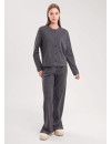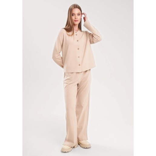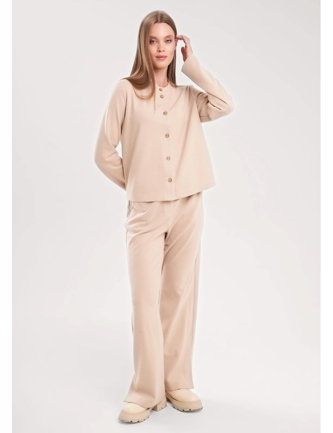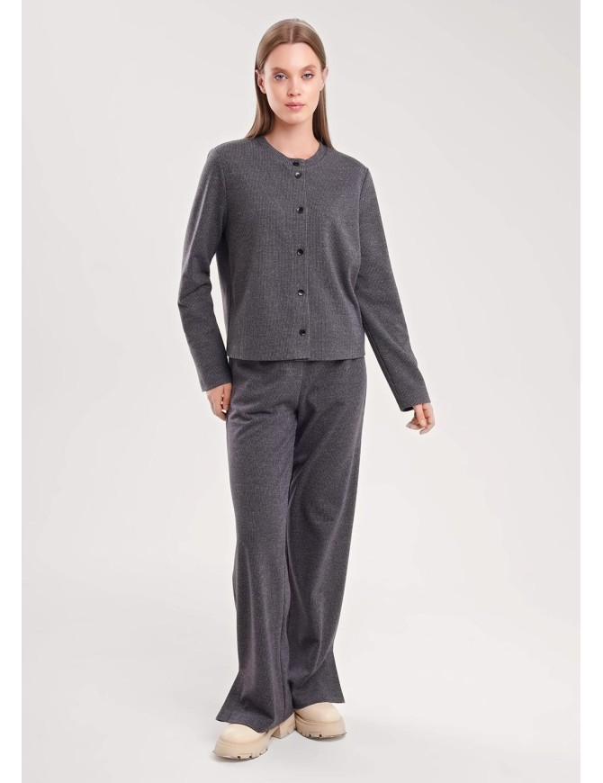 Брюки широкие из трикотажного поливискозного полотна джерси. По талии пояс на внутренней резинке. Спереди имитация гульфика. Боковые карманы с отрезным бочком. Боковые шлицы, по низу изделия потайной стежок.