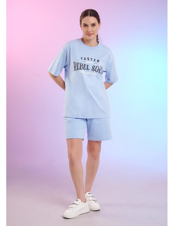 Футболка свободного кроя из хлопкового трикотажного полотна. Короткий втачной рукав. Округлая горловина с обтачкой . Спереди принт.