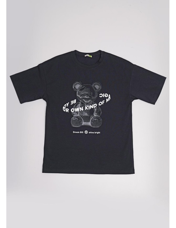 Свободная футболка из хлопка с эластаном, дополненная трендовым принтом отлично впишется в твой летний гардероб. Горловина оформлена эластичной окантовкой.