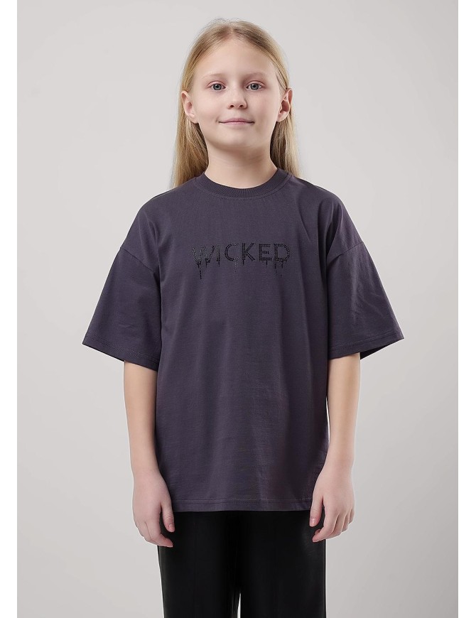 Супер оверсайз силуэт хлопковой футболки - тренд сезона! Фишка -стильные термостразы. Эластичная горловина, комфортная посадка. Сочетай футболку с любимыми широкими брюками и будь на стиле!
