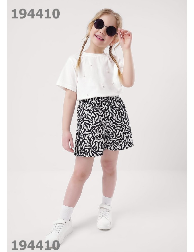 Нарядная футболка для девочки с бусинами по переду. Горловина оформлена эластичной обтачкой из кашкорсе. Выглядеть стильно-легко!