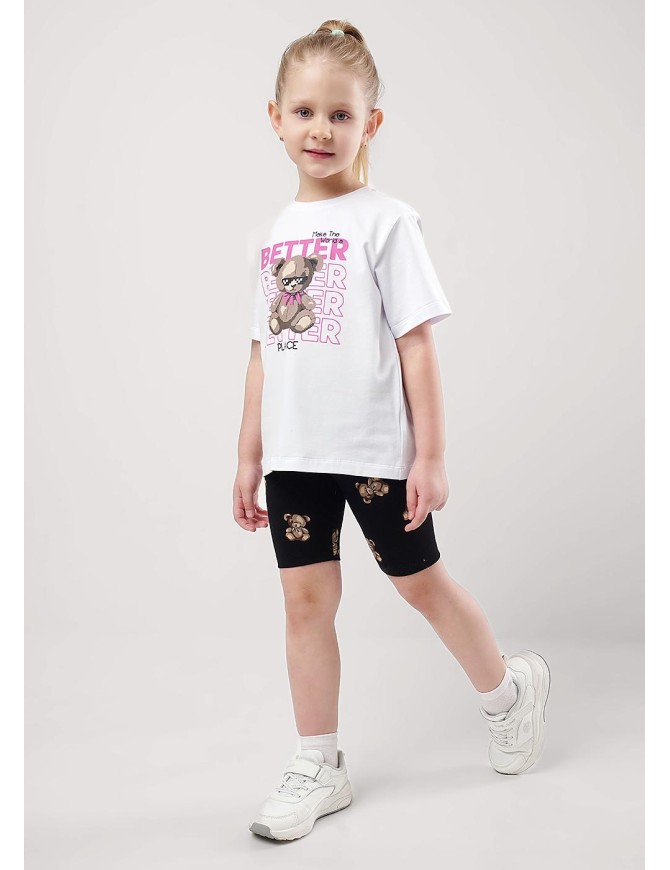 Невероятно яркие принтованные велосипедки подойдут для прогулок или детского сада. Выполнены из эластичного хлопкового трикотажа. Смело сочетайте модель с футболкой или свитшотом.