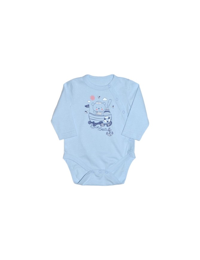 Полукомбинезон(боди)-застежка ассиметричная на переде слева(справа) и по низу изделия на кнопки.Рукав втачной длинный,печать по переду.Горловина,край борта и низ изделия-окантованы.