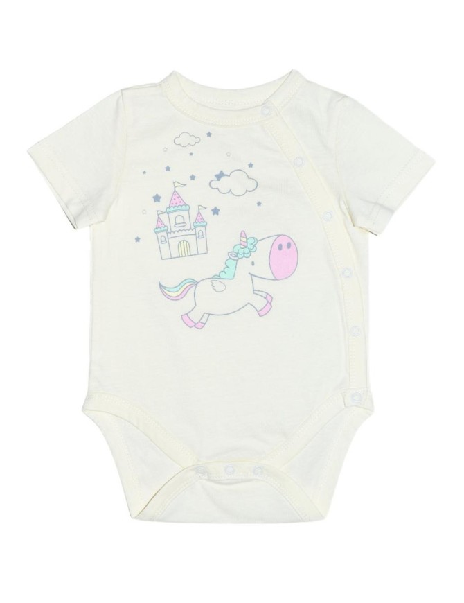 Полукомбинезон(боди)-застежка ассиметричная на переде слева(справа) и по низу изделия на кнопки.Рукав втачной короткий.Печать по переду.Горловина,край борта и низ изделия окантованы.