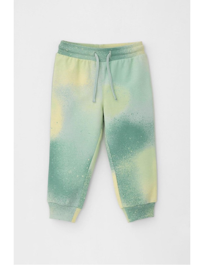 Трикотажные брюки для мальчика из набивного петельчатого футера. Эластичный пояс на резинке регулируется по ширине с помощью шнурка, внизу эластичные манжеты.