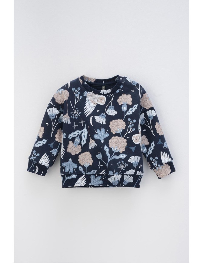 Джемпер для девочки из петельчатого футера. В составе 80% натурального хлопка и 20% полиэстера, при этом полиэстер ввязан внутрь по особой технологии и не соприкасается с кожей. У изделия эластичная горловина, приспущенные объёмные рукава, эластичные манжеты и пояс. Оригинальная набивка выполнена из стойких текстильных красителей. Джемпер сохраняет цвет и форму после многократных стирок.