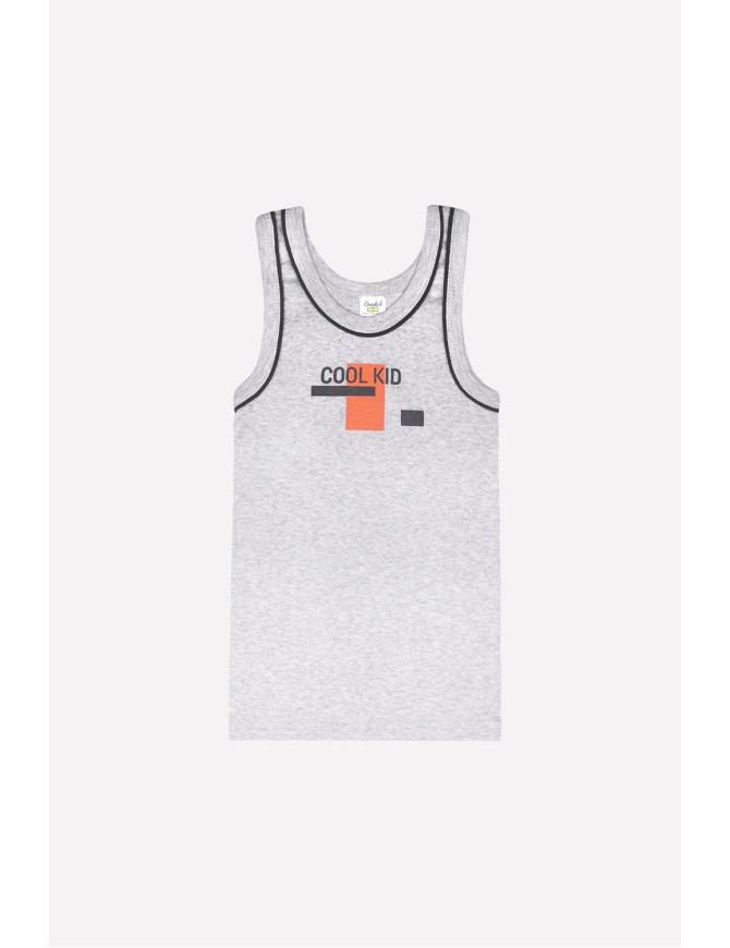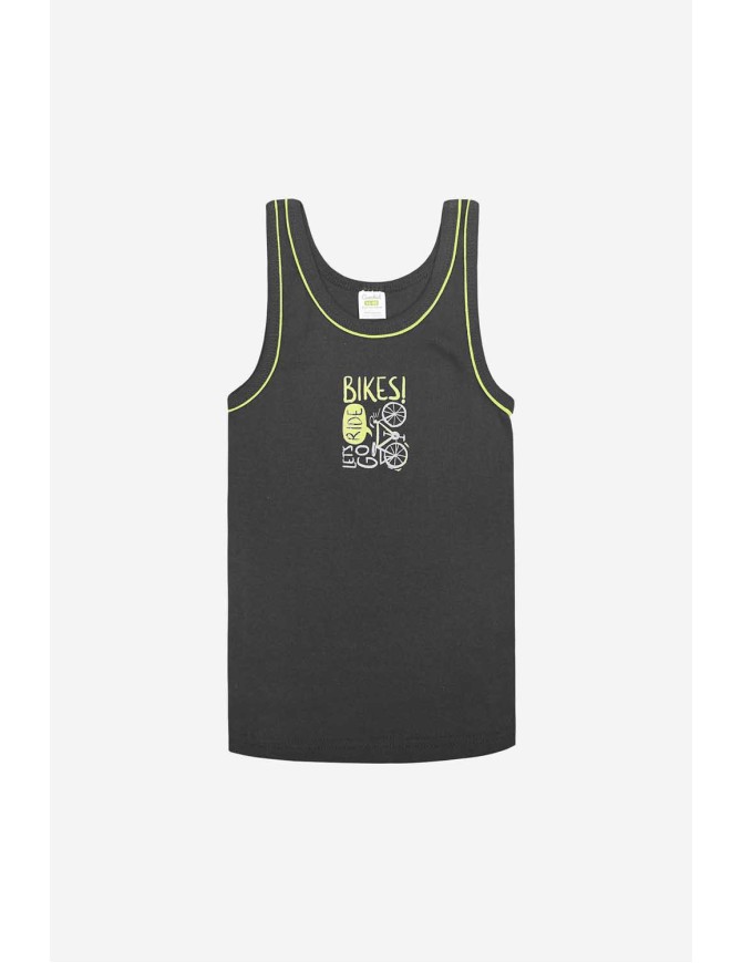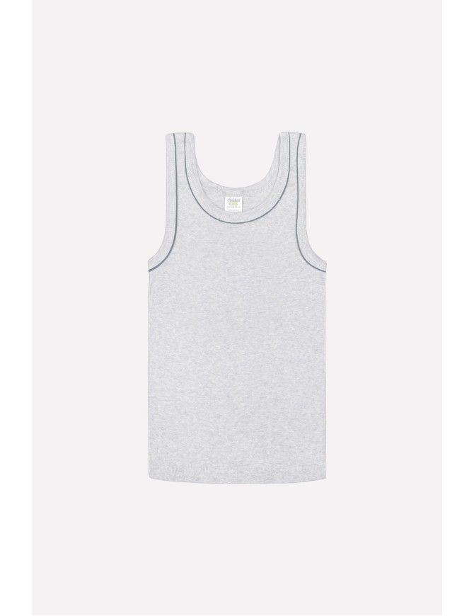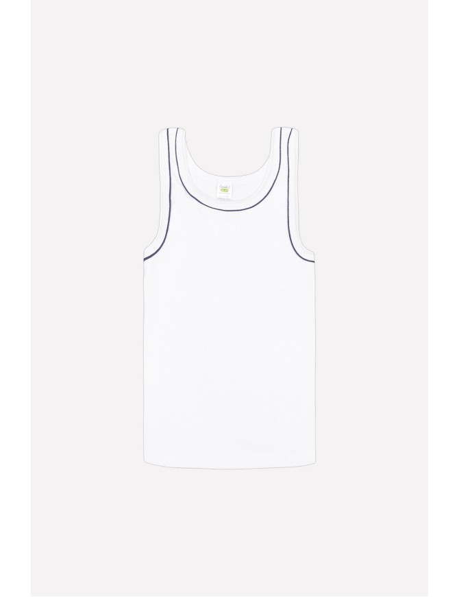 Майка для мальчика из рибаны, горловина и проймы обработаны бейкой с отделочным кантом.