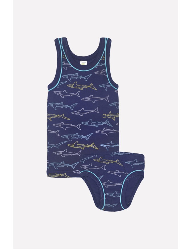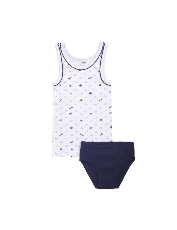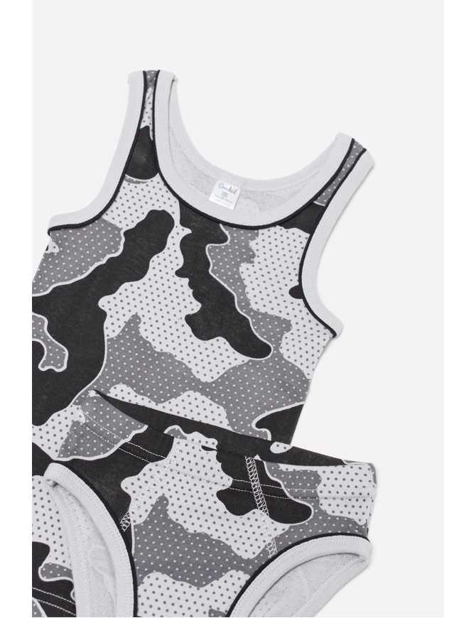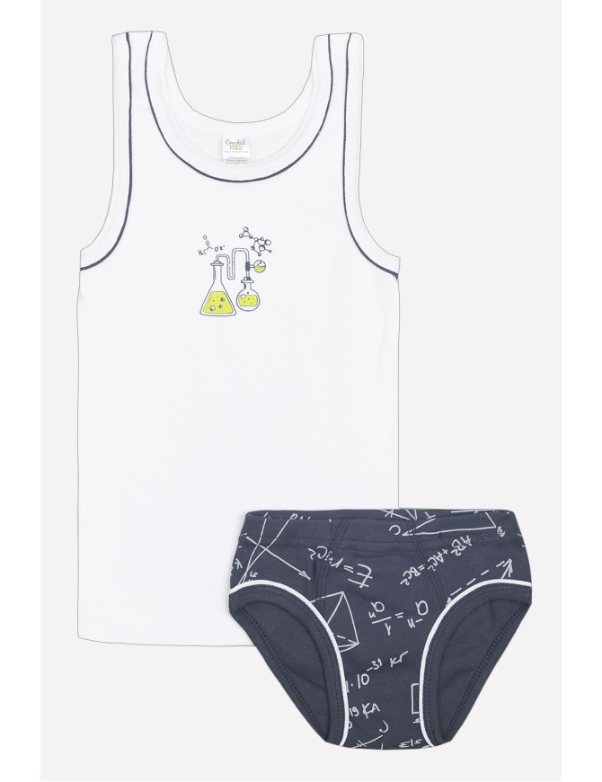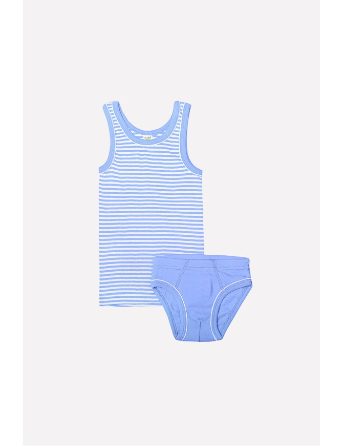 Комплект белья для мальчика из трикотажного хлопка. Бесшовная майка и трусы-плавки с двойной центральной частью и вытачкой. Пояс на эластичной резинке.
