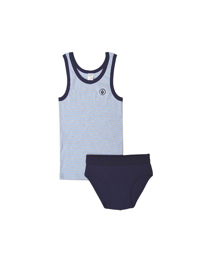 Майка бесшовная, горловина и проймы обработаны бейкой отделочного цвета, нашивка. Плавки из однотонного ластика с вязаным поясом, по ножкам бейка.