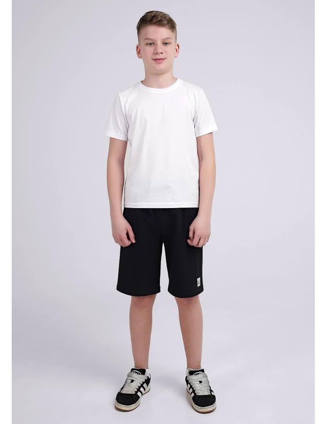 Удлинённые шорты из футера. Эластичный пояс, регулировка шнуром. Модель отлично подходит для занятий спортом. Небольшой акцент-минималистичная нашивка.