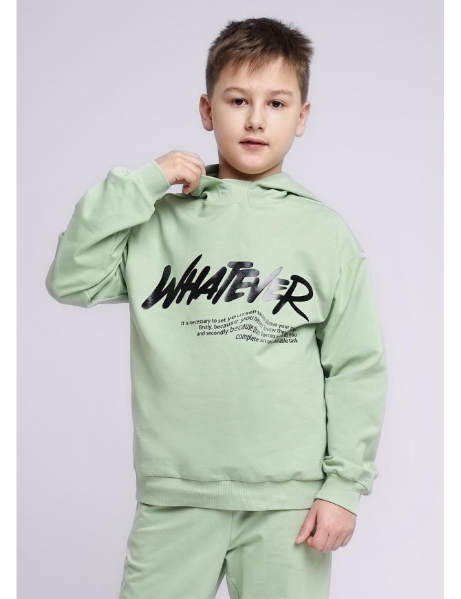 Худи из футера с лайкрой. Украшен впереди ярким принтом.