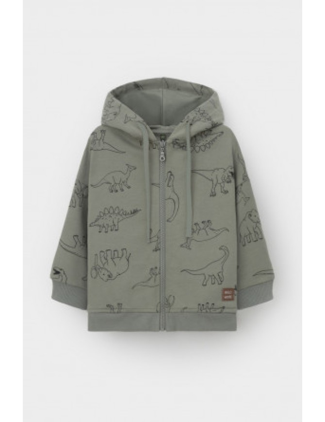 Трикотажная толстовка на молнии с капюшоном для мальчика. Изготовлена из мягкого набивного футера петли. Модель с боковыми карманами. Пояс и манжеты выполнены из эластичного трикотажа в рубчик.