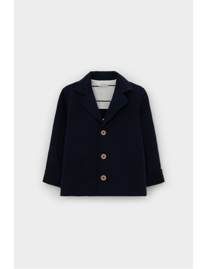 Пиджак для мальчика из высококачественного трикотажного полотна футер петля. Застёгивается на пуговицы. Изделие сохраняет цвет и форму после многократных стирок.