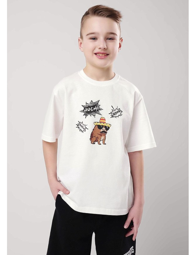 Хлопковая футболка свободного силуэта - основа повседневного гардероба. Стильные разнообразные принты подарят хорошее настроение, а эластичная горловина и комфортная посадка сделают вещь любимой.