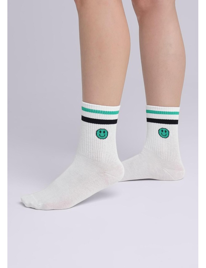 Носки подростковые с яркими, контрастными полосками и риуснком "Смайл"