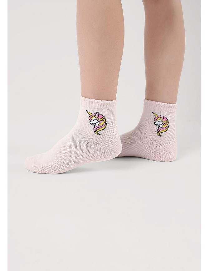 Облегченные носки плетение сетка для девочки с рисунком единорога на паголенке