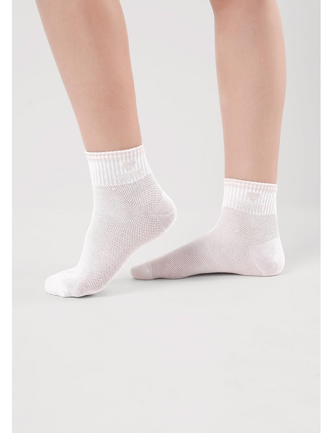 Облегченные носки плетение сетка для девочки с надписью и сердечком на паголенке