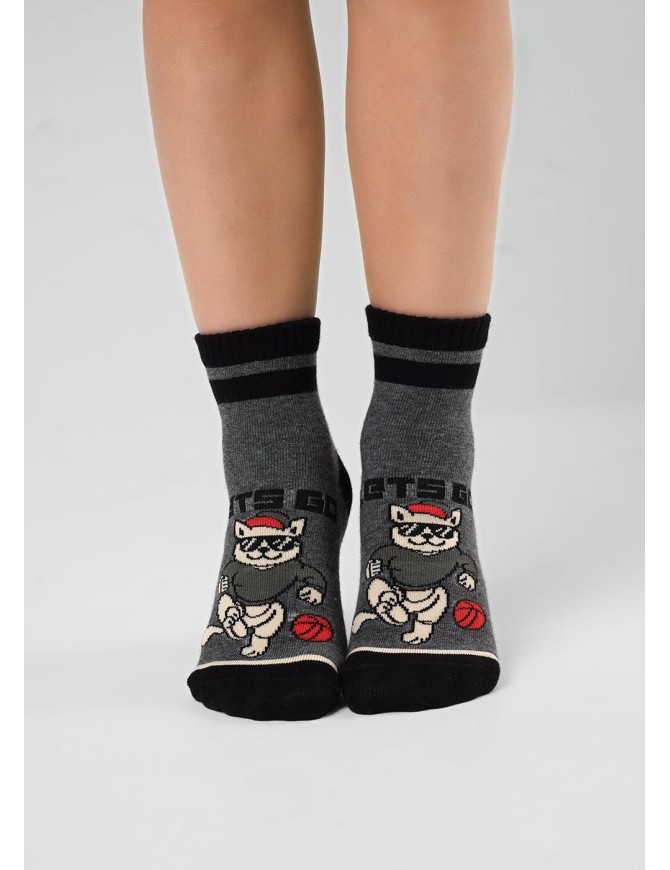 Носки детские с игровым рисунком кота и надписью "LETS GO".