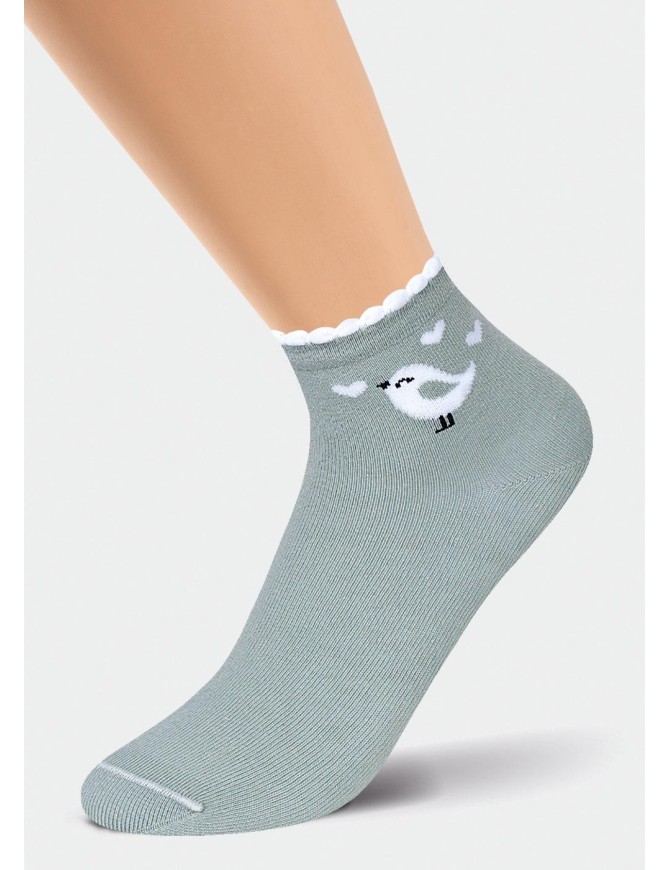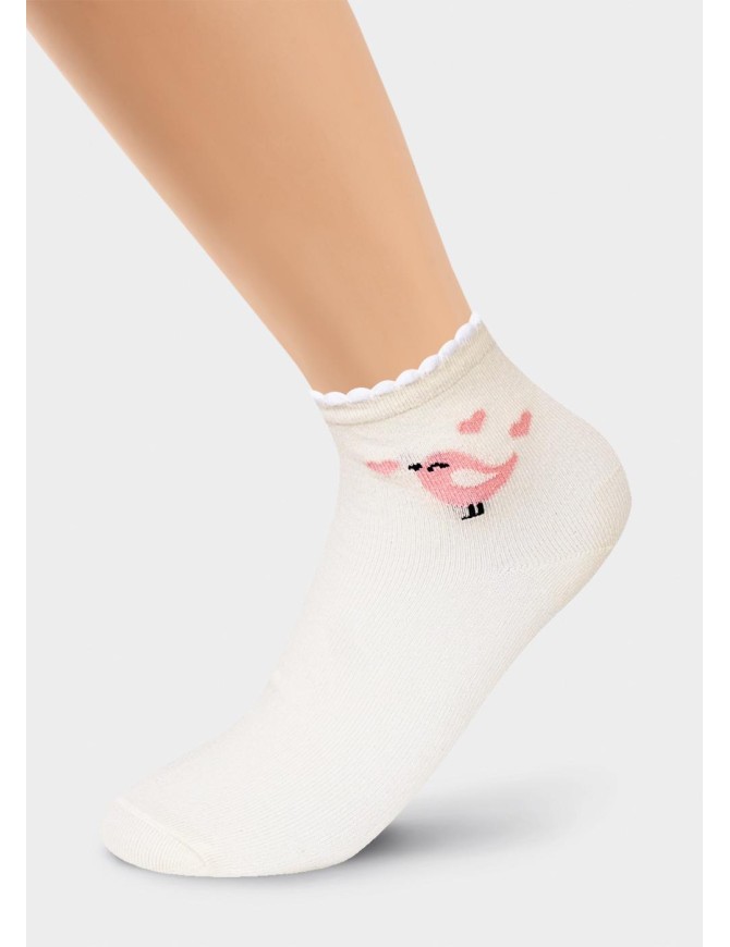 Нежные носки для девочки с рисунком птичка на паголенке.