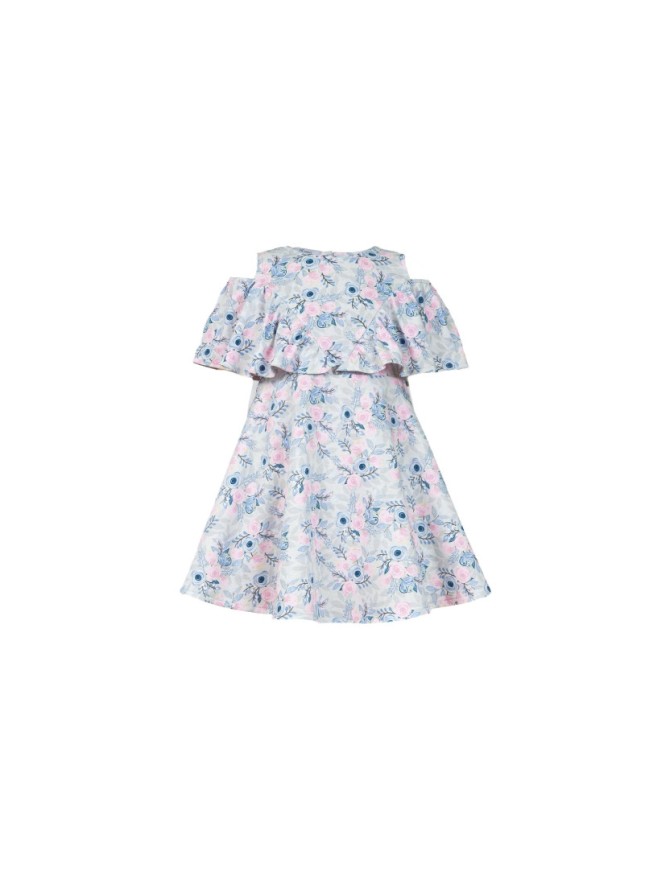 Летнее платье выполнено из качественного кулирного полотна (100% хлопок).Модель полуприлегающего силуэта, декорирована воланами и удобной застежкой на пуговицу. Оригинальный принт точно понравится юным модницам . Такое платье идеально подойдёт для прогулки, а также для садика, похода в гости