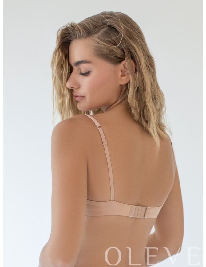 Бюстгальтер из полиамида, формованная чашка без уплотнения, с косточками. Регулируемые бретели, передняя часть которых обтянута тканью.