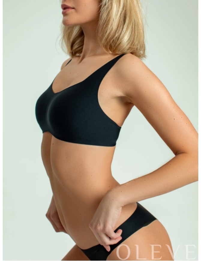 Бесшовный бюстгальтер из микрофибры. Силиконовые вставки выполняют функции косточек. В комплекте съёмные латексные вкладыши. Спинка леотард. Крючки и фурнитура в цвет бюстгальтера.