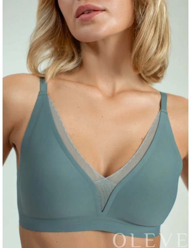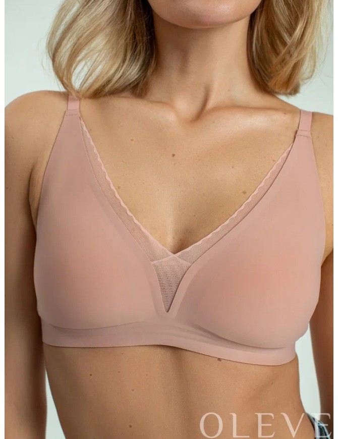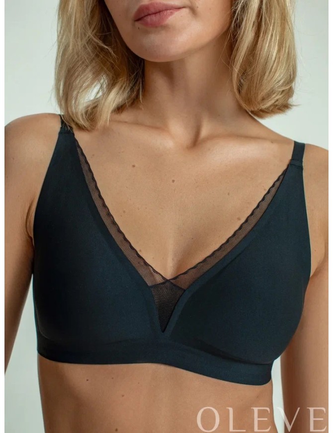 Бюстгальтер T-shirt из микрофибры. В комплекте съёмные латексные вкладыши. Силиконовые вставки выполняют функции косточек. Зона декольте декорирована эластичной сеткой.